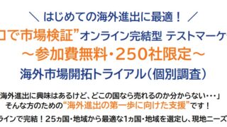 『海外市場開拓トライアル(個別調査)』渡航不要・参加無料で参加できるオンラインテストマーケティングのご案内(中小機構)