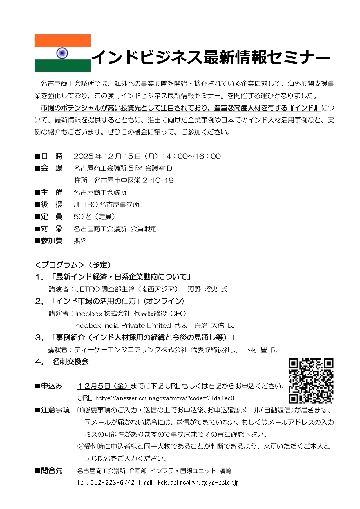Tel : 052-223-6742 Email : kokusai_ncci@nagoya-cci.or.jp