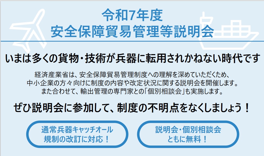 安全保障貿易管理制度の基礎情報から最新の改訂内容をお伝えする説明会を、全国各地で無料にて開催します。